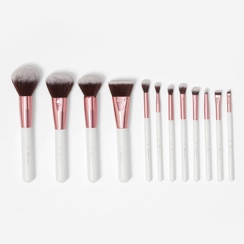 Blush, blend, line and define with our pale pink BH Chic 14 Piece Brush Set, a collection of professional-quality brush essentials for face, eyes, and lips. The two-tone synthetic brushes can be used with liquids, creams and powders to achieve precise makeup application, allowing you to create flawless looks ranging from subtle to striking. Brushes come in a matching zip-up case with room to stash additional items.